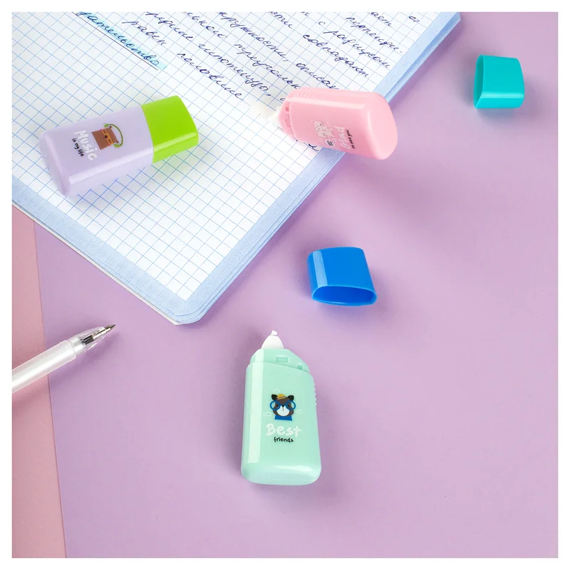 Корректирующая лента MESHU 'Best friends' с напечатанными рисунками на корпусе в виде животных служит канцелярским помощником и ак...