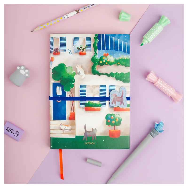 Ежедневник недатированный, А5, 136л., кожзам, MESHU 'Сat walk. Cattorini island', тон. блок, резинка