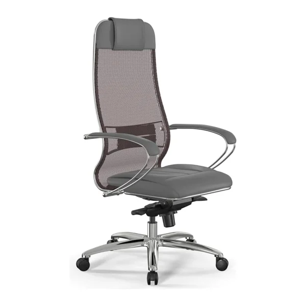 Кресло руководителя Метта L1-2K TS+Infinity светло-коричневый/серый, ткань/сетка, крестовина хром