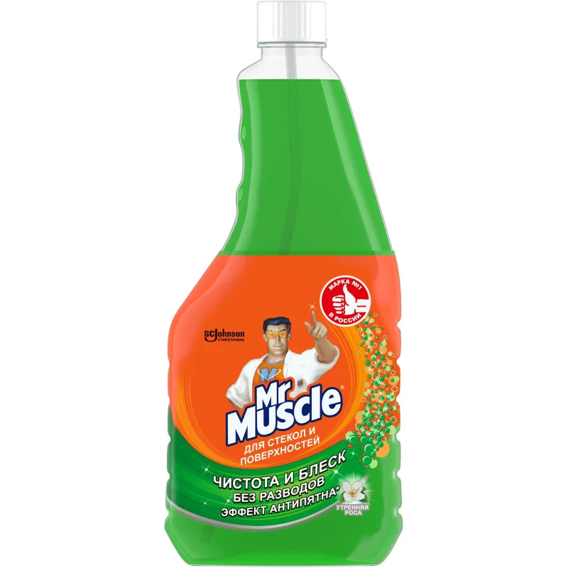 Средство для стекол и зеркал МИСТЕР МУСКУЛ (запаска)с нашат.спиртом,530 мл