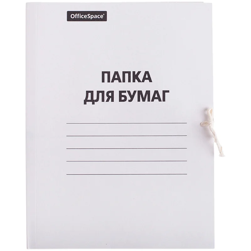 Папка для бумаг с завязками OfficeSpace, картон немелованный, 320г/м2, белый, до 200л.
