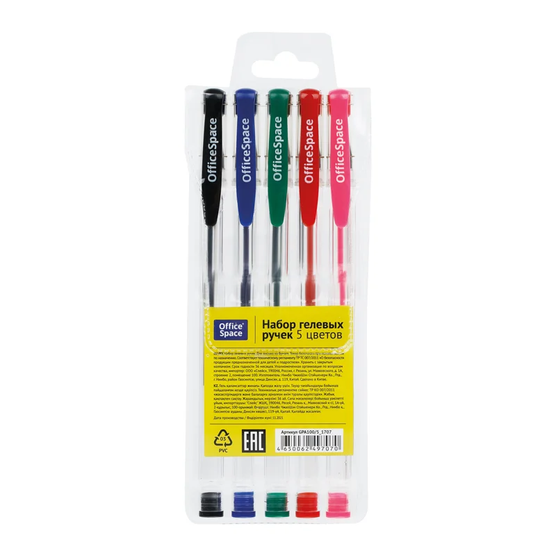 Набор гелевых ручек OfficeSpace, 5шт., 05цв., 1,0мм, европодвес