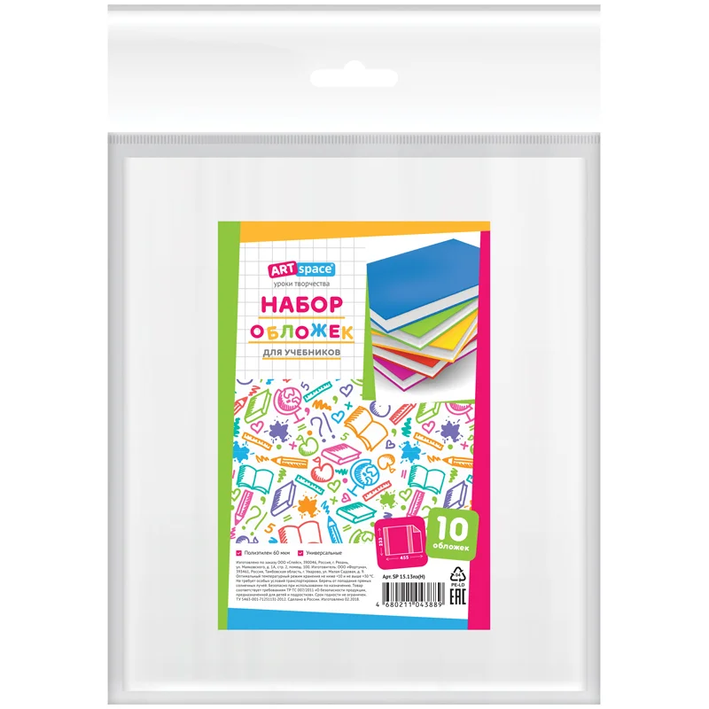 Набор обложек (10шт.) 233*450 для учебников, универсальная, ArtSpace, ПЭ 60мкм