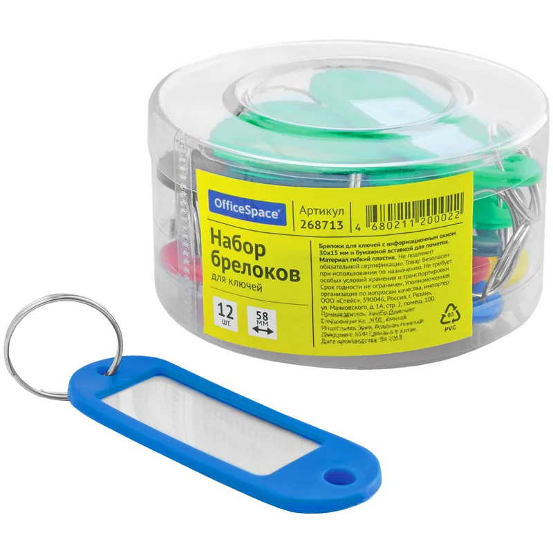 Набор брелоков для ключей OfficeSpace, 58мм, 12шт., ассорти