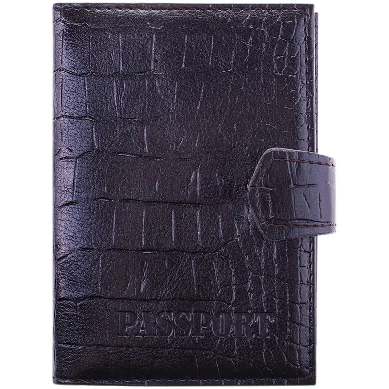 Обложка для паспорта OfficeSpace экокожа + изолон, с кнопкой, с подкладом, черный, крокодил