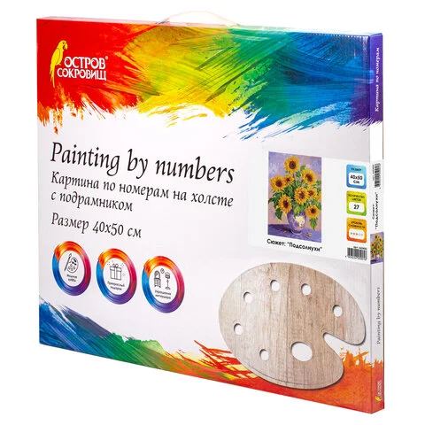 Картина по номерам 40х50 см, ОСТРОВ СОКРОВИЩ 'Подсолнухи', на подрамнике, акриловые краски, 3 кисти