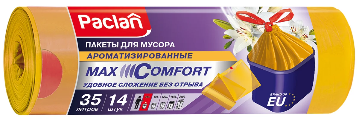 Мешки для мусора Paclan Aroma с завязками 53 х 60см, 35л х 14шт