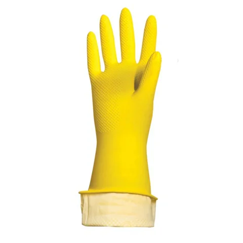 Перчатки хозяйственные латексные Paclan с внутренним хлопковым напылением, размер 9 (L). Манжета — закатанный край...