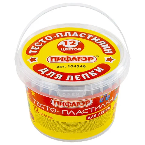 Пластилин на растительной основе (тесто для лепки) ПИФАГОР, 12 цветов, 360 г, пластиковое ведро, 104