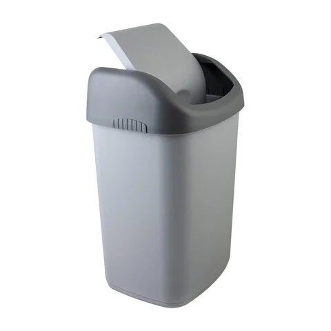 Ведро мусорное с КРЫШКОЙ (качающейся) 14 литров, ПОДВЕСНОЕ, 42х27х21 см, серый/графит, 327, 43327006