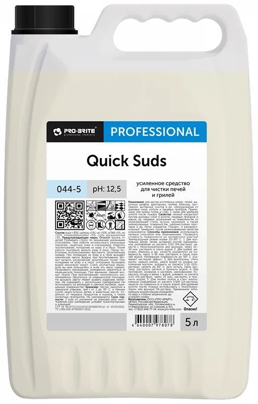 Средство для чистки плит, духовок, грилей от жира/нагара 5 л, PRO-BRITE QUICK SUDS, концентрат, 7807