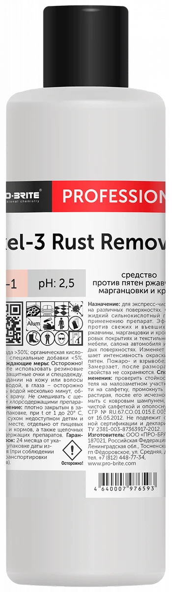 Средство против пятен ржавчины, марганцовки и крови Pro-Bright Axel-3 Rust Remover 046–1 1 л Назначение: для уда...