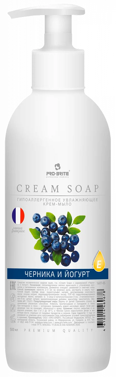 Жидкое мыло с дозатором Pro-Brite Cream Soap 500мл, 1607-05, черника-йогурт