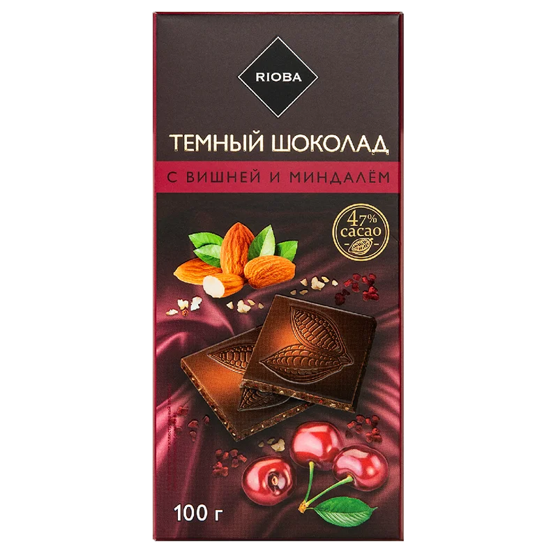 RIOBA Шоколад темный с вишней и миндалем, 100г