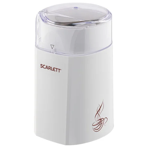 Кофемолка SCARLETT SC-CG44506, 160 Вт, объем 60 г, пластик, ножи из нержавеющей стали, белая с рисун