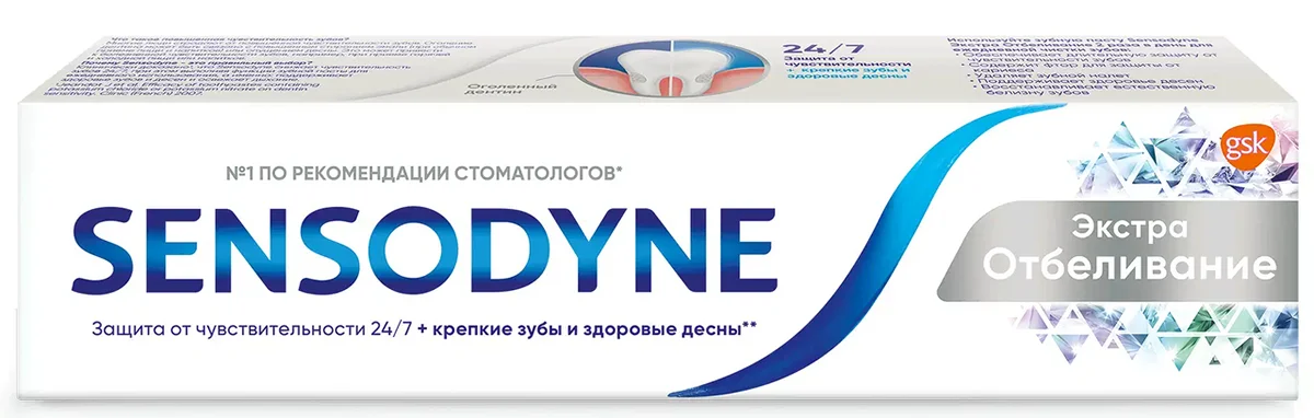 Зубная паста Sensodyne Экстра отбеливание для чувствительных зубов с фтором, 50мл