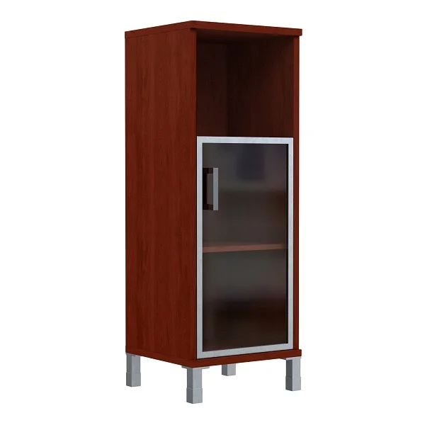 Шкаф-колонка средний Skyland Born B421.4, бургунди, 475х450х1286мм, со стеклом в раме, левый