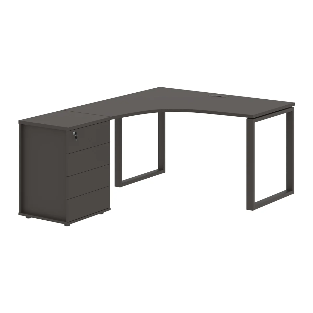Стол эргономичный с тумбой EQCET 1318(L) Дуб Денвер тёмный/Черный 1360х1880х750 EDIS
