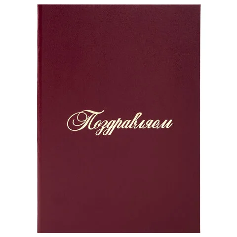 Папка адресная бумвинил 'ПОЗДРАВЛЯЕМ!', А4, бордовая, индивидуальная упаковка, STAFF 'Basic', 129578