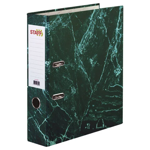 Папка-регистратор STAFF 'Basic' БЮДЖЕТ с мраморным покрытием, 70 мм, без уголка, зеленая, 229620