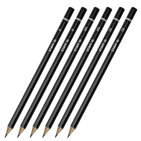 Карандаши чернографитные STAFF 'College' BLP-254, НАБОР 6 шт., 2H-2B, черный корпус, 181254