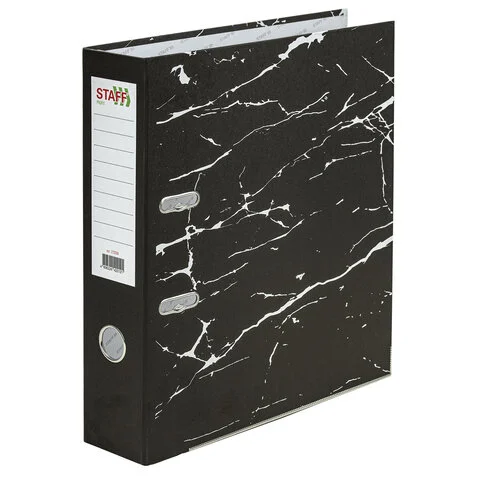 Папка-регистратор STAFF 'Profit' с мраморным покрытием, 75 мм, черная, СЪЕМНЫЙ МЕХАНИЗМ, 272007