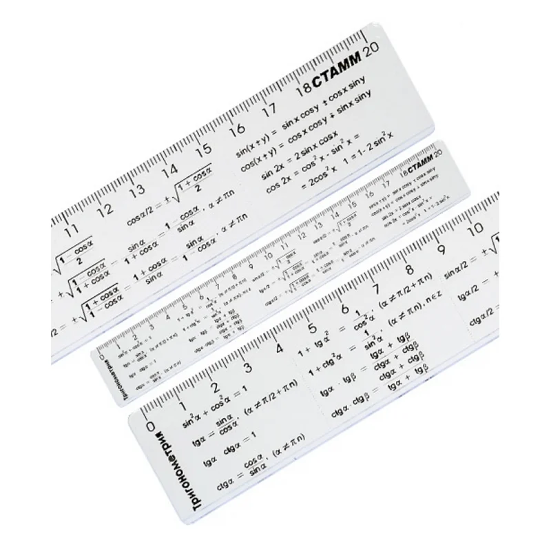 Широкая линейка-шпаргалка с тригонометрическими формулами. Чёткое нанесение информации и шкалы делений 20см. Безопасные закругленн...