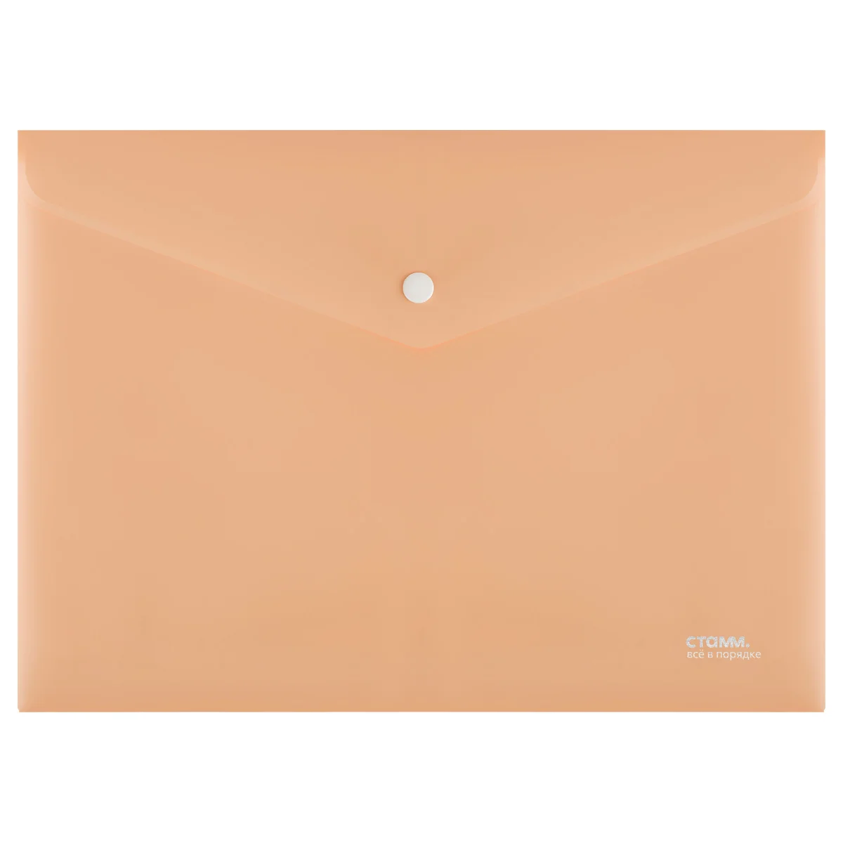 Папка-конверт на кнопке СТАММ 'Акцент' А4, 180мкм, пластик, непрозрачная, персиковая