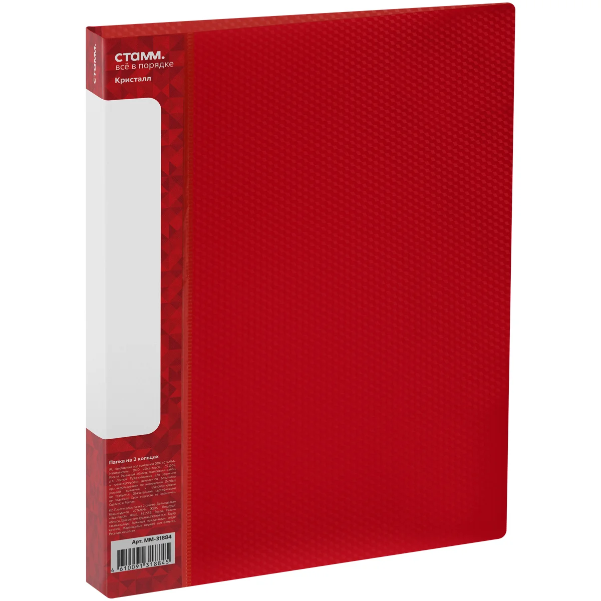 Папка на 2 кольцах СТАММ 'Кристалл' А4, 40мм, 700мкм, пластик, красная