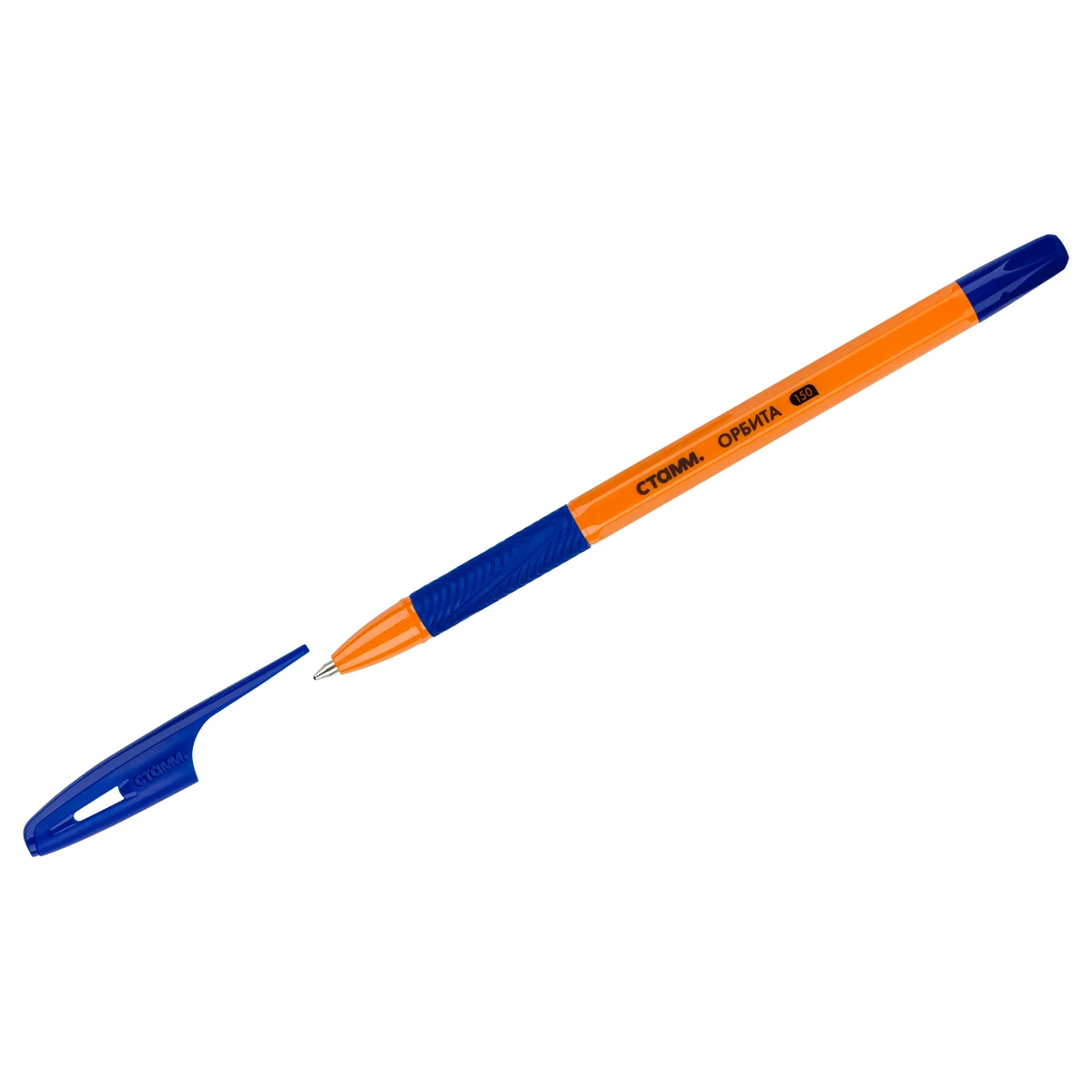 Ручка шариковая СТАММ 'Орбита 150' синяя, 0,7мм, оранжевый корпус