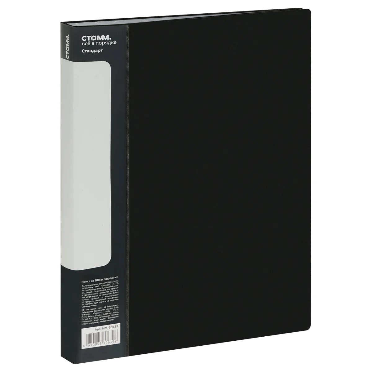 Папка со 100 вкладышами «СТАММ» серии «Стандарт» предназначена для хранения бумаг формата А4. Цвет папки – чёрный. Папка изготовле...