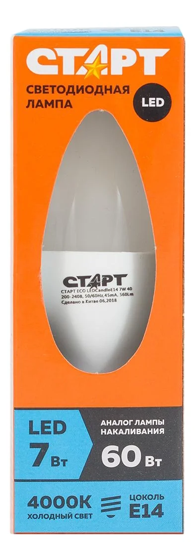 Лампа светодиодная Старт E14 Led 7Вт холодный свет свеча