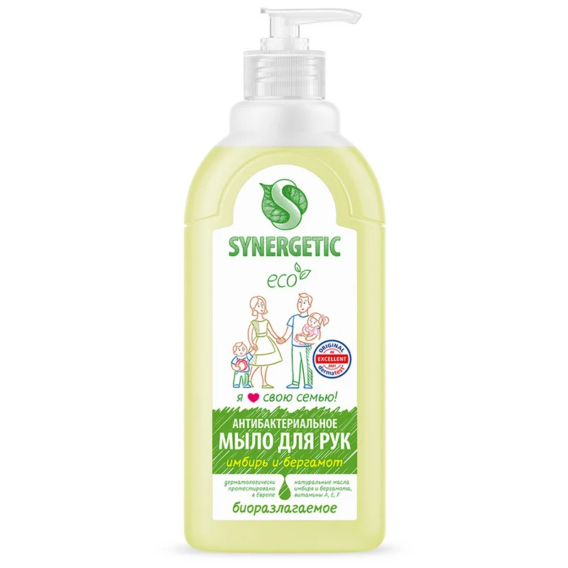 Мыло жидкое Synergetic 'Имбирь и бергамот', антибактериальное увлажняющее, гипоаллергенное, 500мл