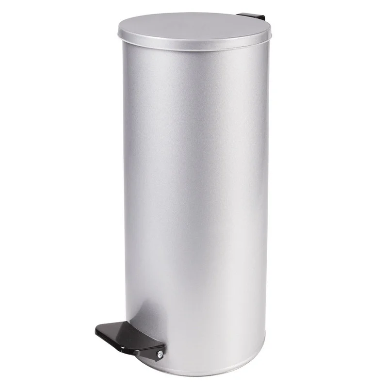 Урна для мусора с педалью 40 литров, УСИЛЕННОЕ, серая, оцинкованная сталь, ТИТАН