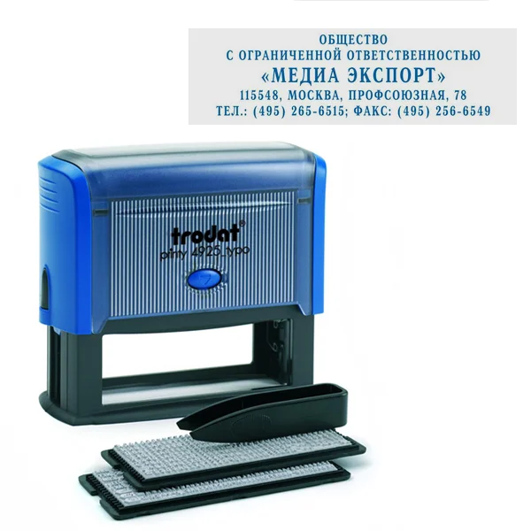 Штамп самонаборный 5-стр, оттиск 82х25 мм, синий, TRODAT 4925, корпус СИНИЙ, КАССЫ В КОМПЛЕКТЕ, 5340