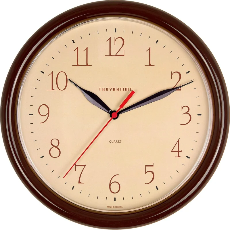 Часы настенные TROYKATIME (TROYKA) 91931912, круг, белые, коричневая рамка, 23х23х4 см