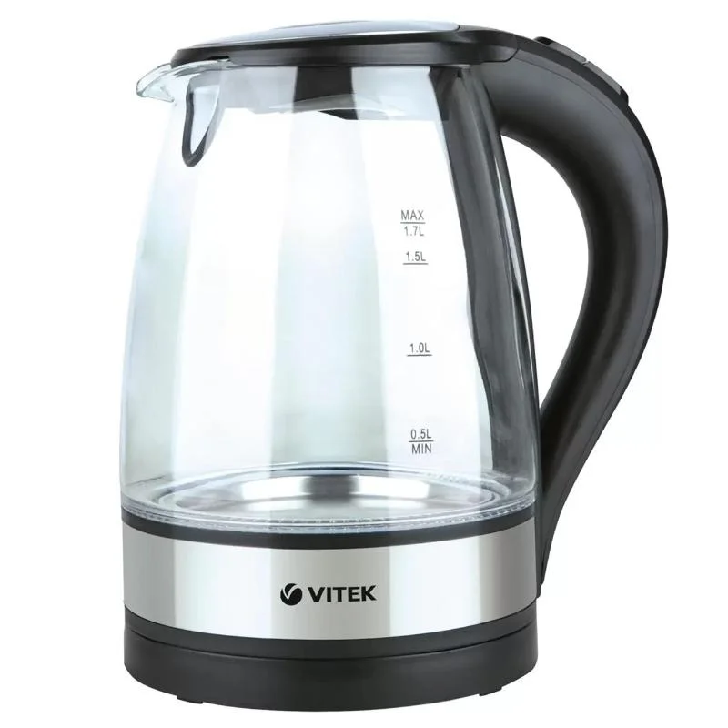 Чайник Vitek VT-7008 объёмом 1.7 л имеет мощность 2200 Вт, оснащён длинным сетевым шнуром, скрытым нагревательным элементом, съём...