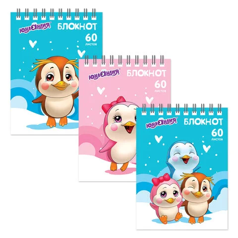 Блокнот МАЛЫЙ ФОРМАТ А6 108х146 мм, 60 л., гребень, картон, клетка, ЮНЛАНДИЯ, 'Пингвинята', 129832