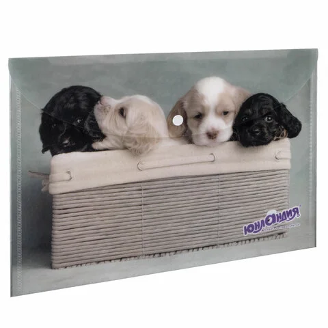 Папка-конверт с кнопкой ЮНЛАНДИЯ 'Щенки', А4, 160 мкм, до 100 листов, цветная печать, 228050