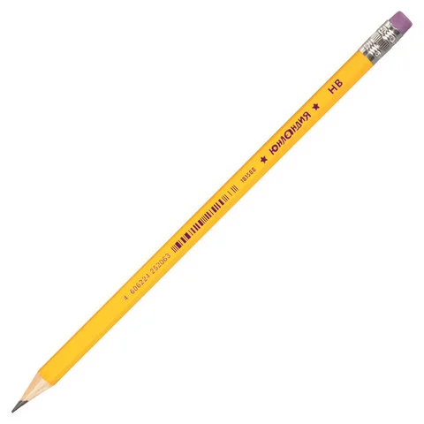 Карандаш чернографитный ЮНЛАНДИЯ, 1 шт., 'Школьный', НВ, корпус желтый, с резинкой, 181588
