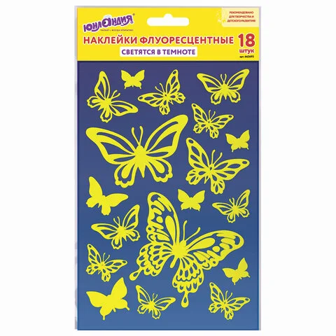 Наклейки флуоресцентные 'Бабочки', светятся в темноте, 18 штук, ассорти, 14х21 см, ЮНЛАНДИЯ, 662693