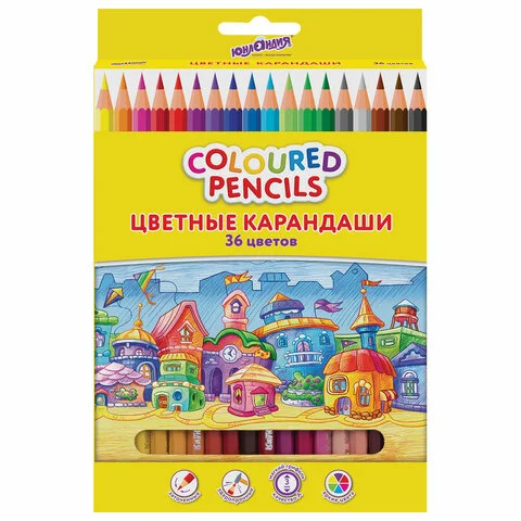Карандаши цветные ЮНЛАНДИЯ 'ДОМИКИ', 36 цветов, шестигранные, грифель 3 мм, 181839