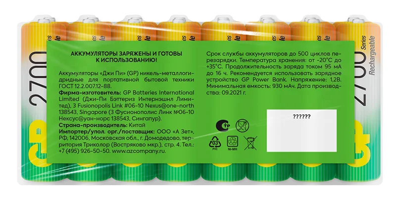 Аккумулятор Gp AA, 2700mAh, 16шт/уп