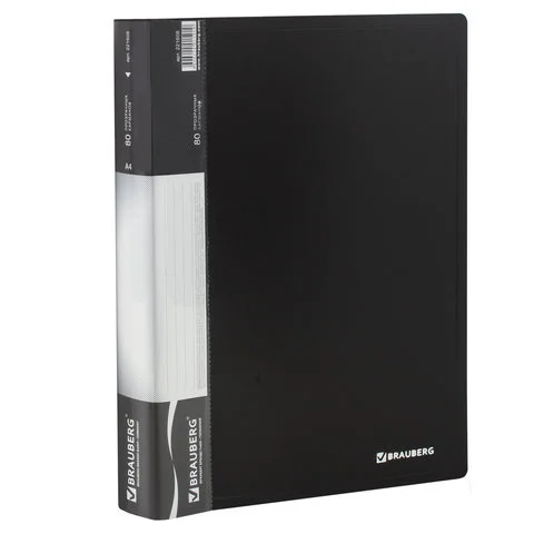 Папка 80 вкладышей BRAUBERG стандарт, черная, 0,9 мм, 221608
