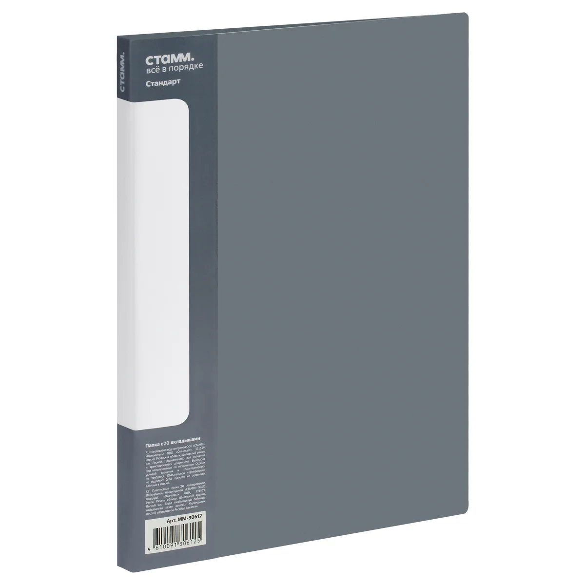 Папка с 20 вкладышами СТАММ 'Стандарт' А4, 14мм, 600мкм, пластик, серая