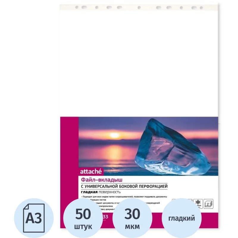 Файл-вкладыш А3 30 мкм ATTACHE горизонтальный, 50 шт