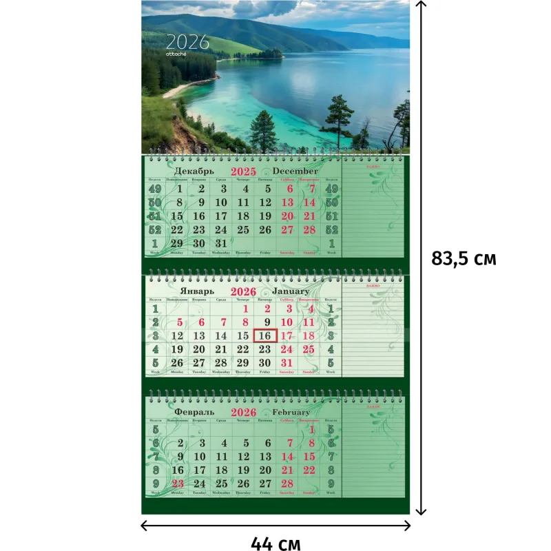 Календарь настенный 3-х блочный 2026 Attache,Супер-Прем+блок,Байкал,440х835
