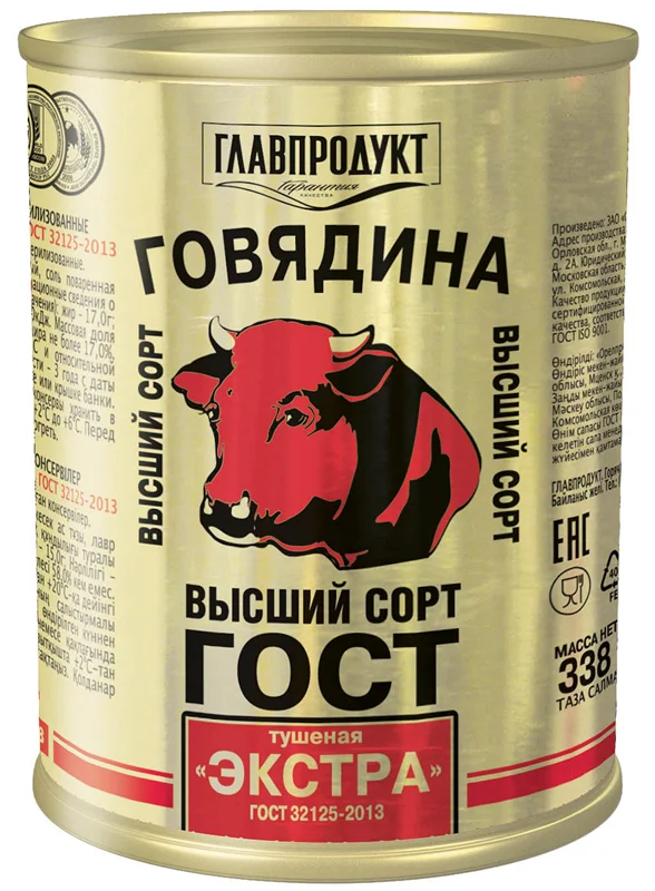 Говядина тушеная Главпродукт Люкс высший сорт, 338 г, изготовлена из натурального продукта без добавления ненужных компонентов, та...
