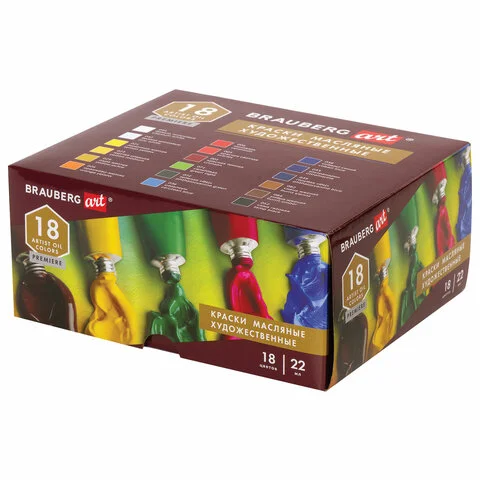 Краски масляные художественные BRAUBERG ART PREMIERE, 18 цв. по 22 мл, в тубах, 191459