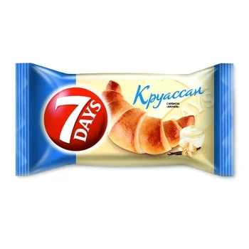 Круассан 7Days с кремом со вкусом ваниль - мягкая выпечка из воздушного слоеного теста с начинкой с нежным вкусом ванили. Этот десерт представляет собой великолепный дуэт, который понравится любителям сладкого. Круассан с начинкой отлично подходит для быстрого перекуса, помогает притупить чувство голода и дарит позитивные эмоции.